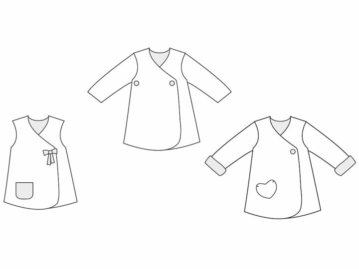 ★ Variante C (LENA): Wendekleid oder Wendejacke mit Schleifen, Herz-Tasche und Ärmelumschlag.
