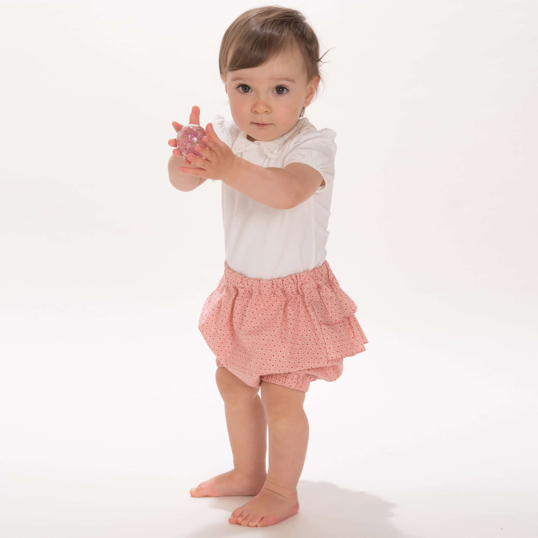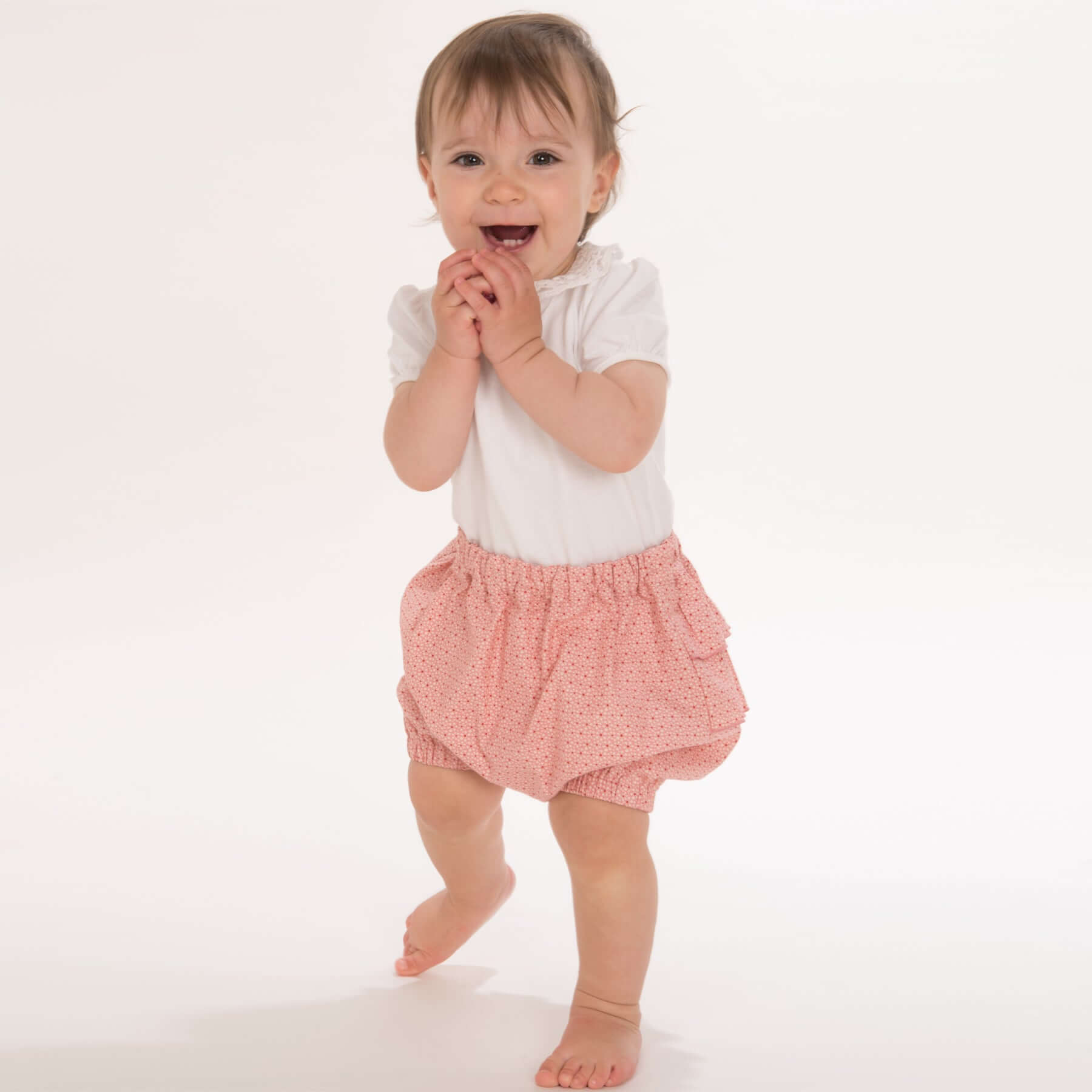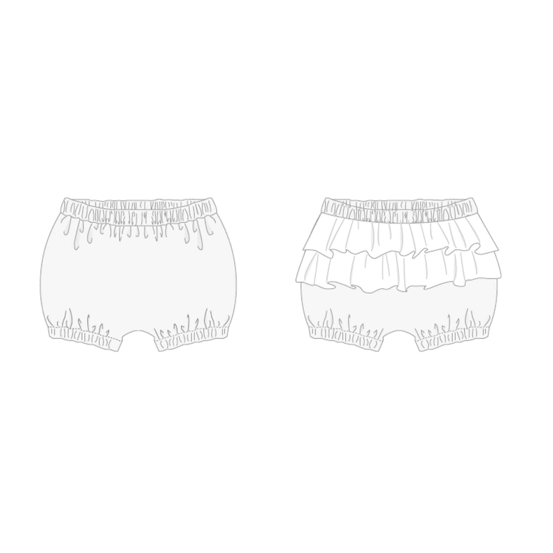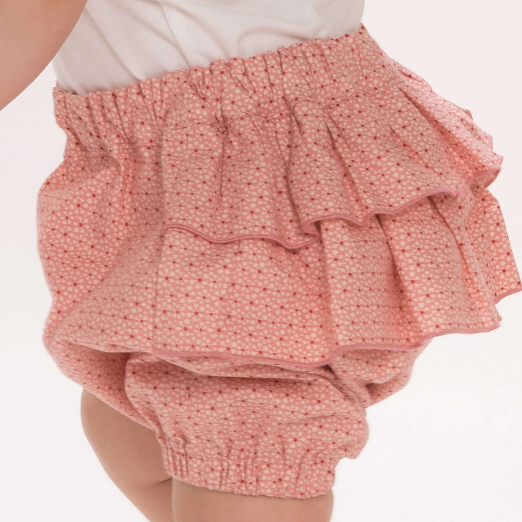 ✨ Sommerliebling zum Selbernähen: Mit EMI nähst du eine kurze, luftige Baby-Pumphose ohne Mittelnaht – mit Rüschen, Gummizug am Bund und Gummizug am Saum. Locker geschnitten, super bequem und schnell genäht.