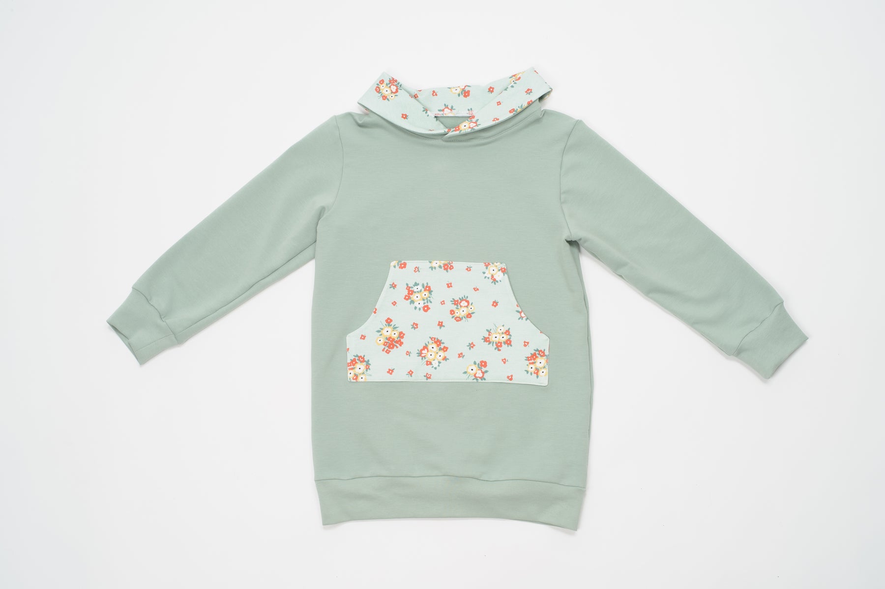 You can sew it with cuffs, with a regular hood, or with a beautiful shawl collar, this kids hoodie/pullover/sweatshirt is perfect for the colder days!