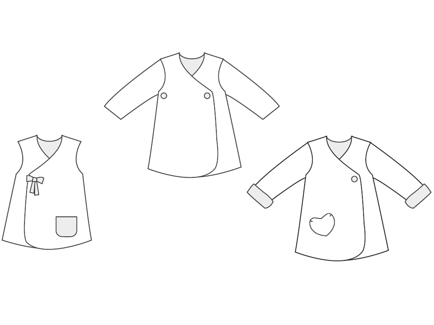 Mit diesem PDF kombinierst du eine süße Wickeljacke und ein bequemes A-Linien-Kleid – perfekt für jede Jahreszeit und viele Anlässe.